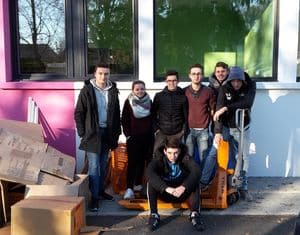 Les élèves de 1ère bac pro Logistique du lycée ont participé jeudi 1er décembre au déménagement du centre de Chantonnay des Restos du Cœur. L’association quitte en effet la rue Béranger pour un nouveau local plus vaste et plus moderne rue Alexandre Rochereau. Dans la bonne humeur, les 15 élèves ont prêté main-forte aux bénévoles lors de cette opération de transfert qui nécessitait de l’organisation et de l’implication.