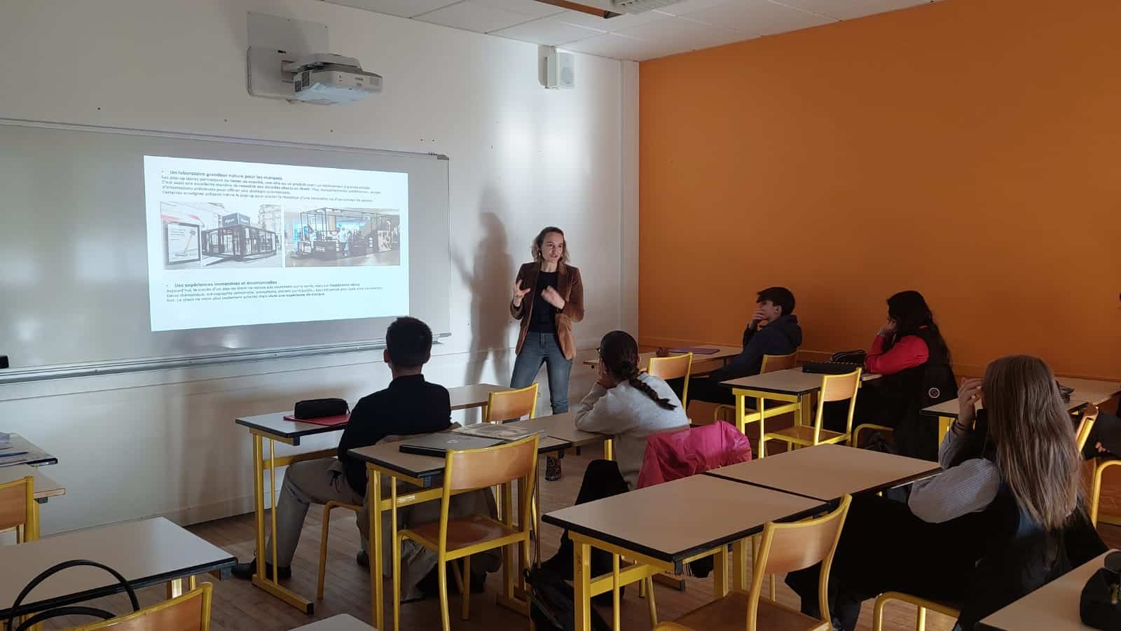 Identité de marque, stratégie de communication multicanale, pitch…Mardi 10 décembre  , les 1ères MCV Commerce option Animation et Gestion de l’espace commercial ont reçu Céline Pointeau, designer, pour un travail sur la communication visuelle, notamment pour avoir des conseils pour annoncer et valoriser la boutique éphémère qu’ils organiseront dans quelques semaines.